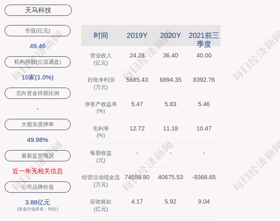 天马科技的总经理、董事长均是陈庆堂,男,54岁,学历背景为博士。