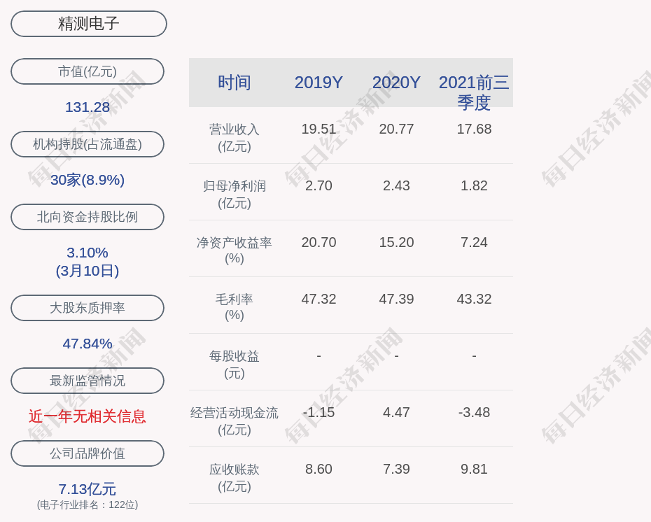每经AI快讯,精测电子(SZ 300567,收盘价:47.2元)3月11日晚间发布公告称,截至本公告披露日,本次减持计划时间已过半,胡隽先生在减持计划期间内未减持公司股份。