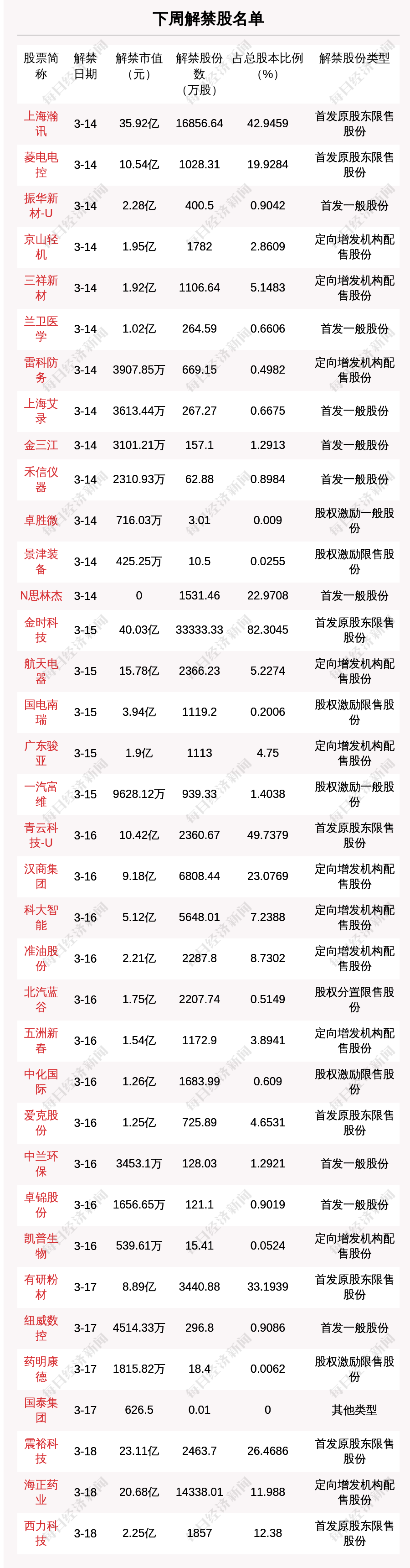 *文中所涉解禁市值为当周最后一个交易日收盘价乘以下周解禁股份数