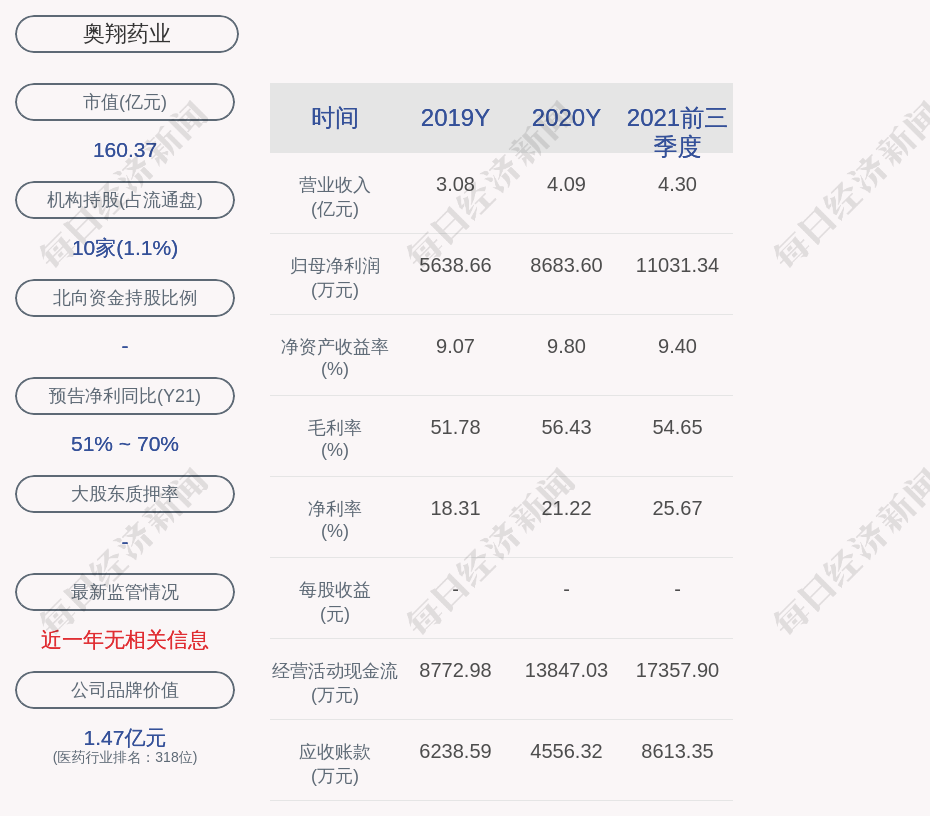 2. 奥翔药业在近3个交易日上涨17.35%,所属医药生物板块同期下跌2.39%,上证指数同期下跌7.04%。