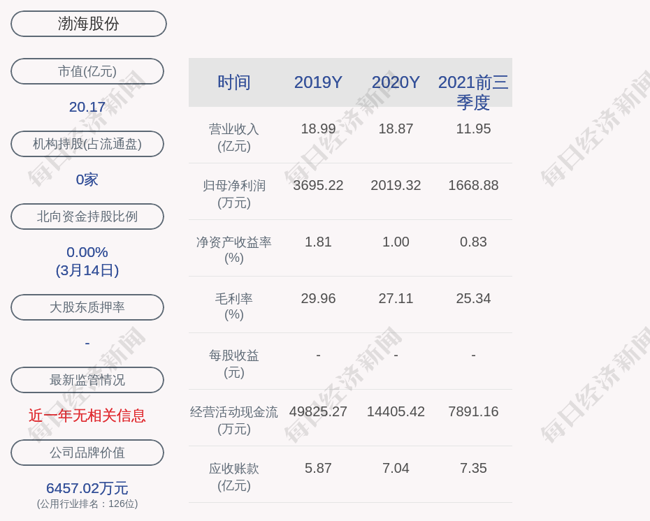 2. 近30日内无机构对渤海股份进行调研。