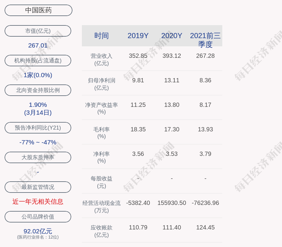 3. 中国医药在近3个交易日上涨31.32%,所属医药生物板块同期下跌2.39%,上证指数同期下跌7.04%。