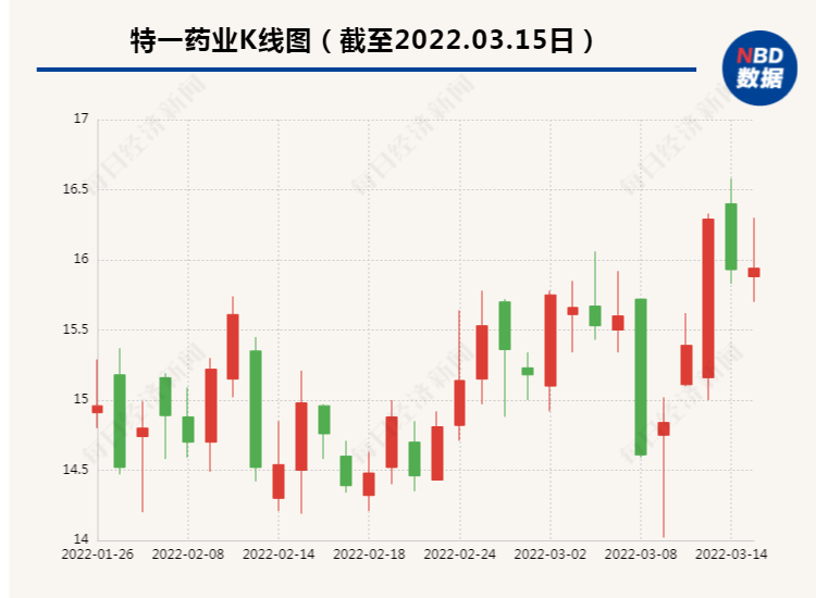3月15日收盘,特一药业报15.94元/股,较前一交易日上涨0.06%。