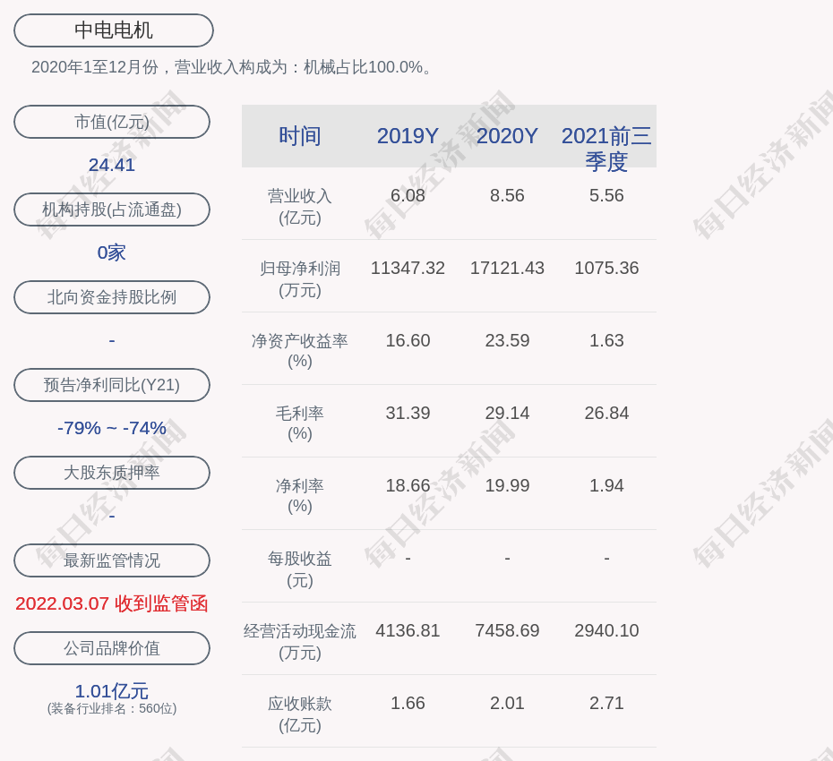 2020年1至12月份,中电电机的营业收入构成为:机械占比100.0%。