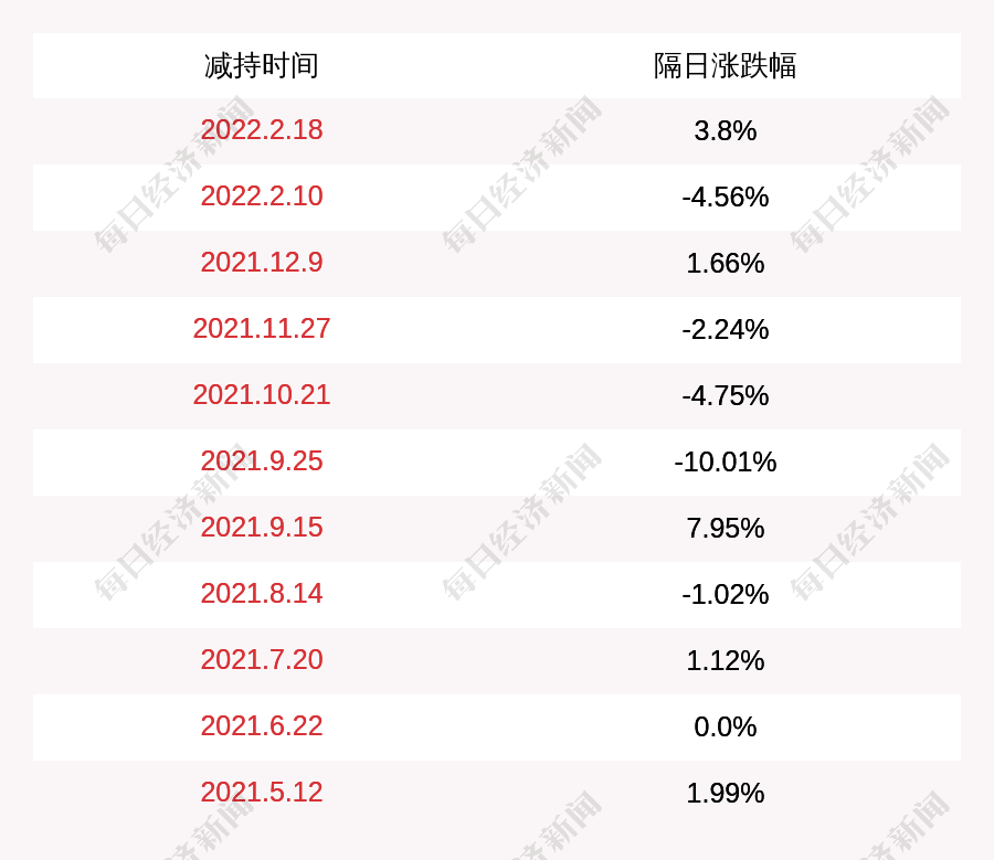 2. 宁波精达上次发布减持公告是2022年02月18日,第二个交易日上涨3.8%,宁波精达近一年共发布12次减持类公告。