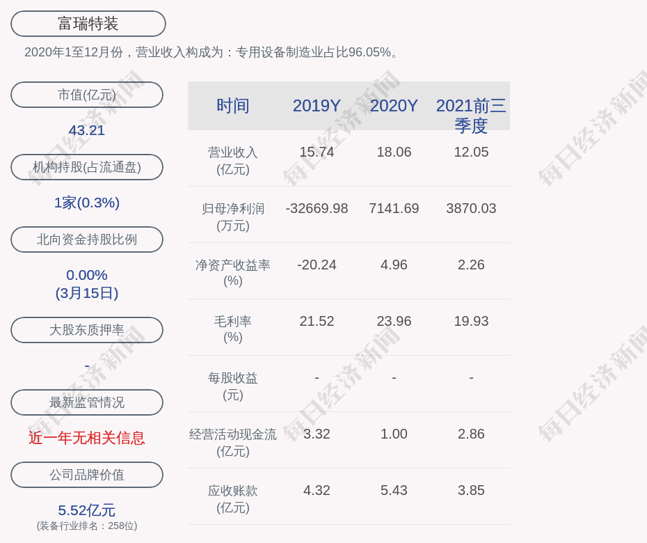 2020年1至12月份,富瑞特装的营业收入构成为:专用设备制造业占比96.05%。