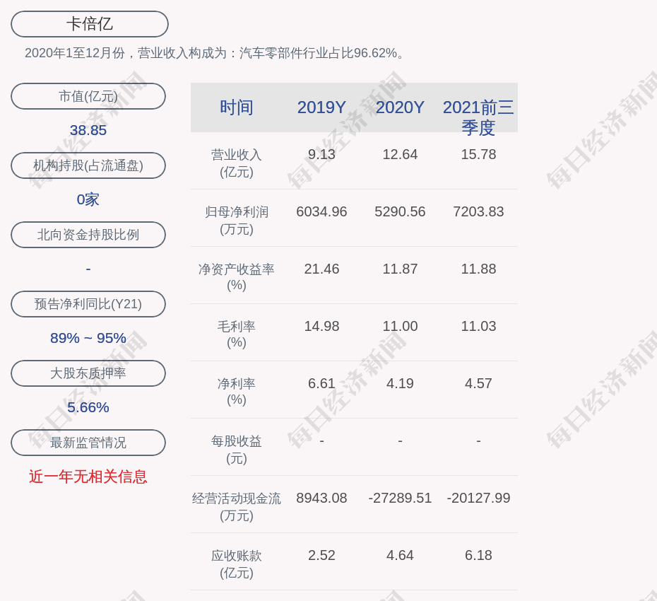 2020年1至12月份,卡倍亿的营业收入构成为:汽车零部件行业占比96.62%。