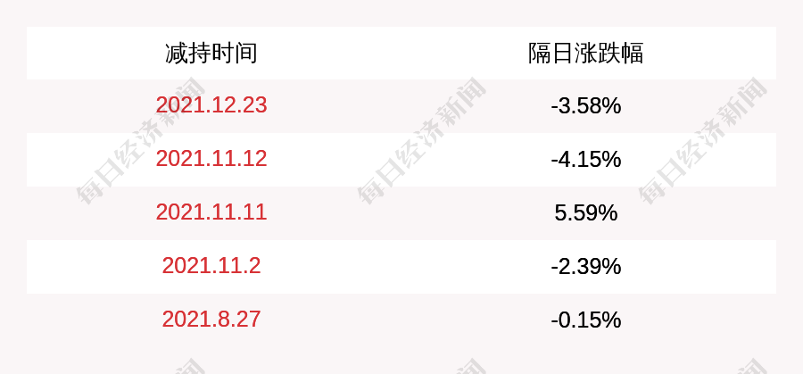 2. 卡倍亿上次发布减持公告是2021年12月23日,第二个交易日下跌3.58%,卡倍亿近一年共发布6次减持类公告。