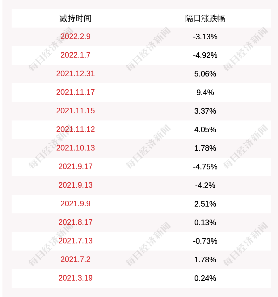 3. 恒信东方上次发布减持公告是2022年02月09日,第二个交易日下跌3.13%,恒信东方近一年共发布15次减持类公告。