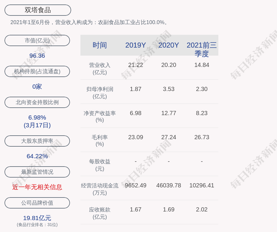 2021年1至6月份,双塔食品的营业收入构成为:农副食品加工业占比100.0%。