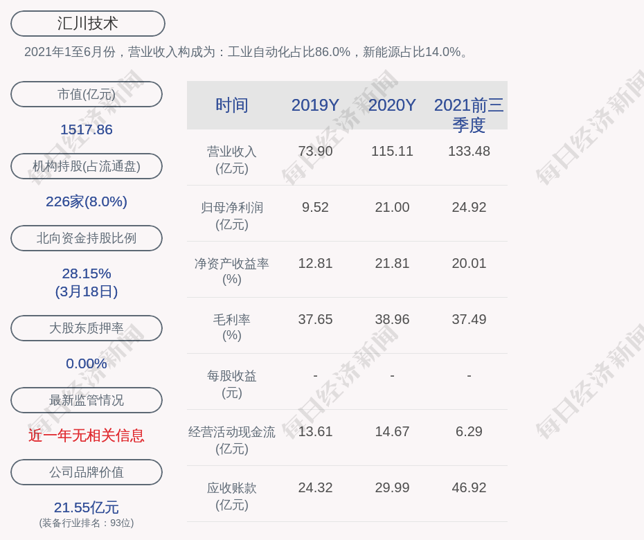 1. 汇川技术近30日内北向资金持股量增加1939.18万股,占流通股比例增加0.86%;