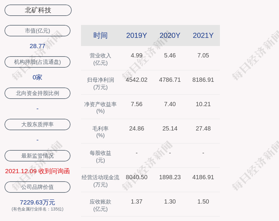 每经AI快讯,北矿科技(SH 600980,最新价:16.55元)3月22日发布年度业绩报告称,2021年营业收入约7.05亿元,同比增加29.09%;归属于上市公司股东的净利润盈利约8187万元,同比增加71.03%;基本每股收益盈利0.4935元,同比增加60.02%。分配方案为:每10股派发现金红利0.48元(含税)、不送红股、不转增。