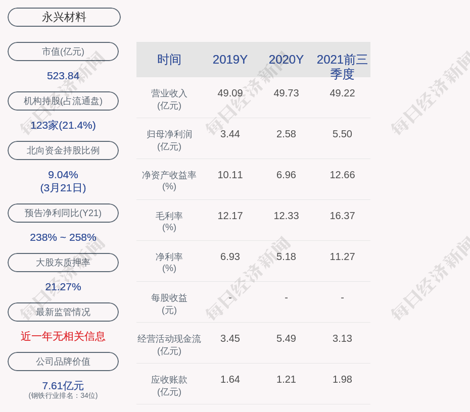 1. 永兴材料近30日内北向资金持股量增加21.81万股,占流通股比例增加0.09%;