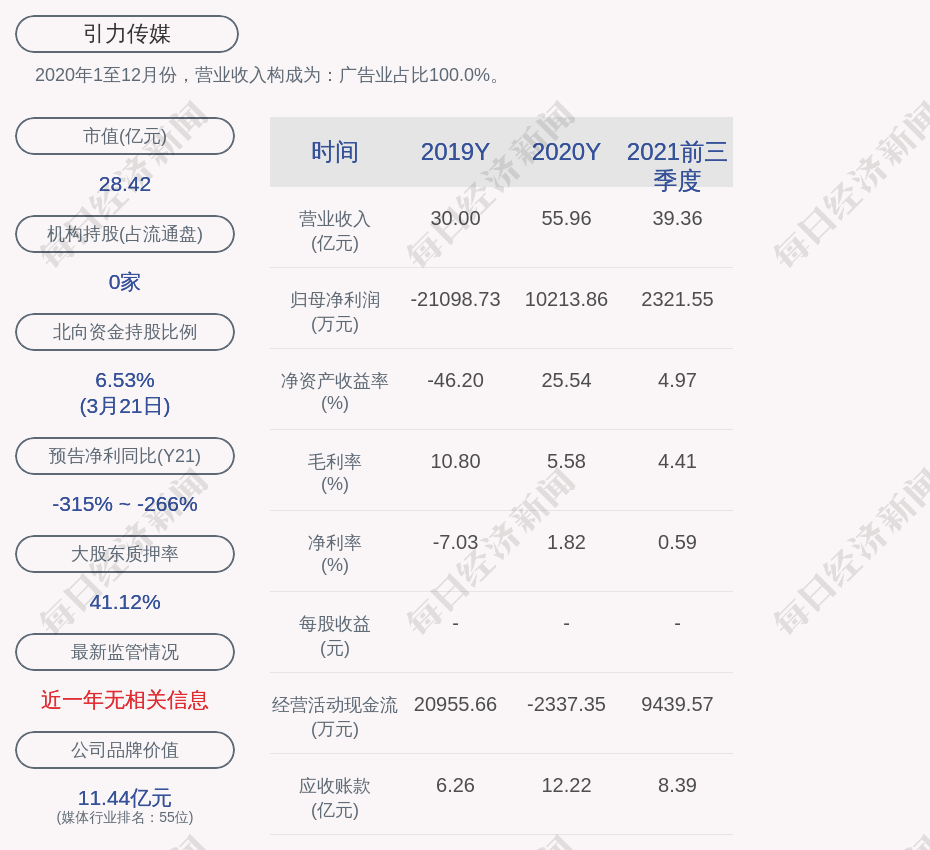 2020年1至12月份,引力传媒的营业收入构成为:广告业占比100.0%。