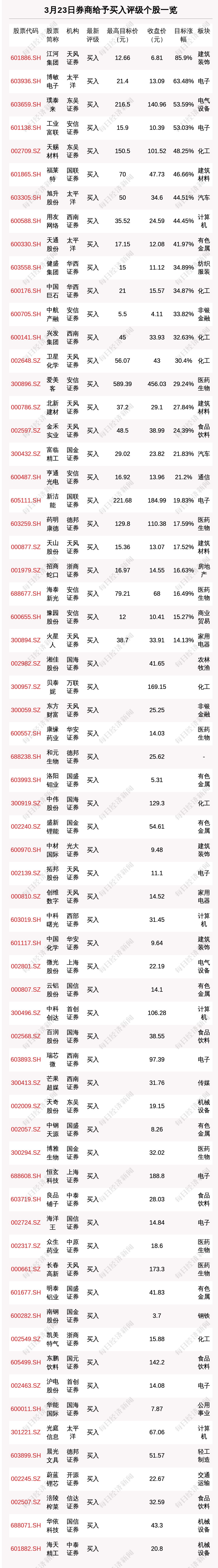 每经AI快讯,3月23日,券商给予评级的个股数共有87只,获得买入评级的个股数共有65只。在公布了目标价格的26只个股中,按照最新收盘价计算,预期涨幅排名居前的个股是江河集团(601886.SH)、博敏电子(603936.SH)、璞泰来(603659.SH),预期涨幅分别是85.9%、63.48%、53.59%。