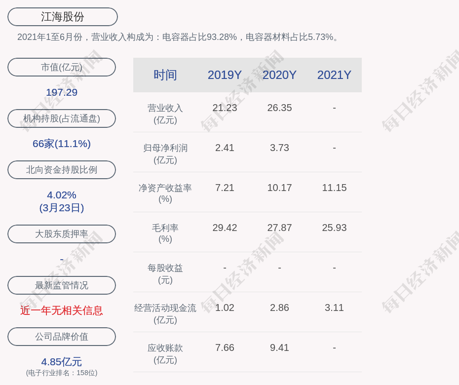 2021年1至6月份,江海股份的营业收入构成为:电容器占比93.28%,电容器材料占比5.73%。