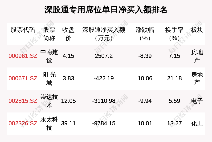 在龙虎榜中,涉及深股通专用席位的个股有4只,中南建设的深股通专用席位净买入额最大,净买入2507.2万元。