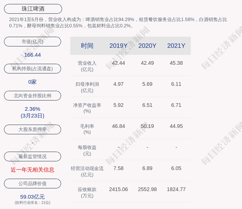 1. 珠江啤酒近30日内北向资金持股量增加6.67万股,占流通股比例增加0.01%;