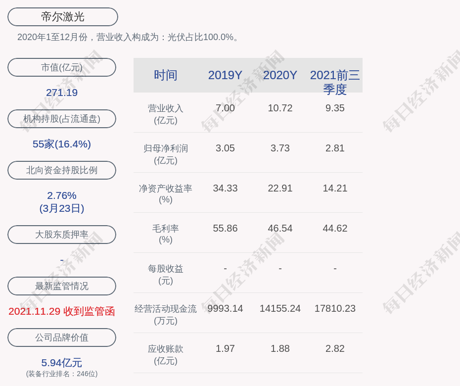 2020年1至12月份,帝尔激光的营业收入构成为:光伏占比100.0%。
