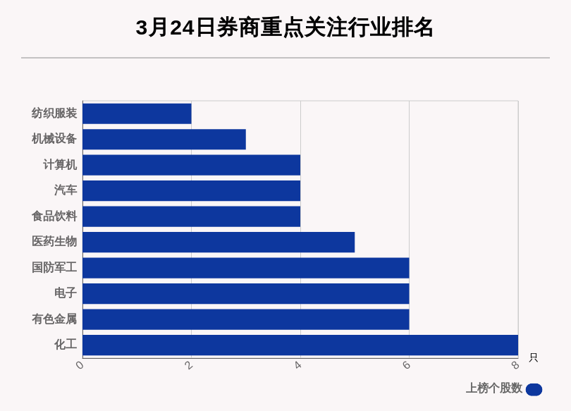 从券商对行业的关注度来看,券商关注个股数居前的行业分别是化工、有色金属、电子。