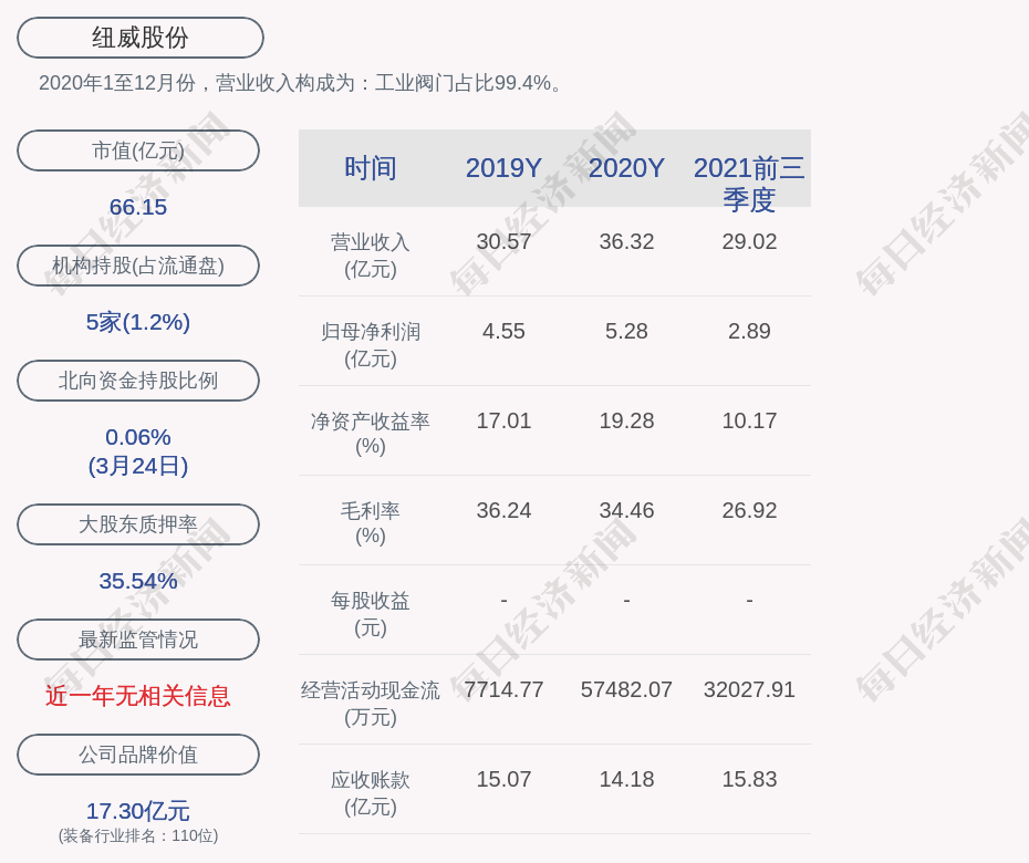 1. 纽威股份近30日内北向资金持股量未发生变化;