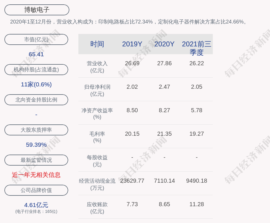 2020年1至12月份,博敏电子的营业收入构成为:印制电路板占比72.34%,定制化电子器件解决方案占比24.66%。