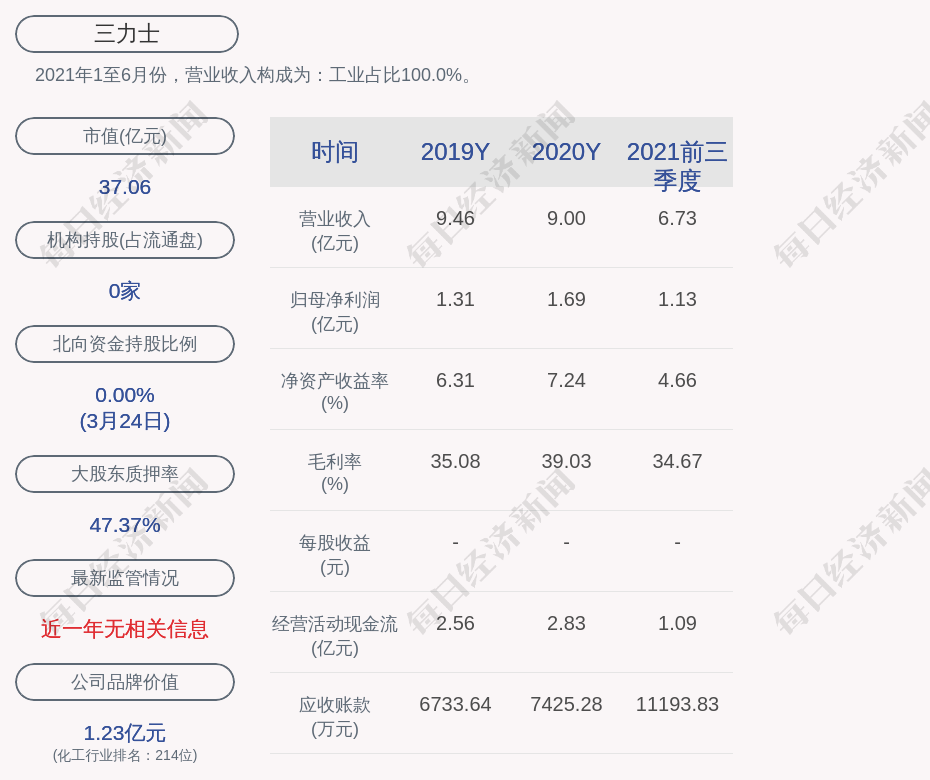 2021年1至6月份,三力士的营业收入构成为:工业占比100.0%。