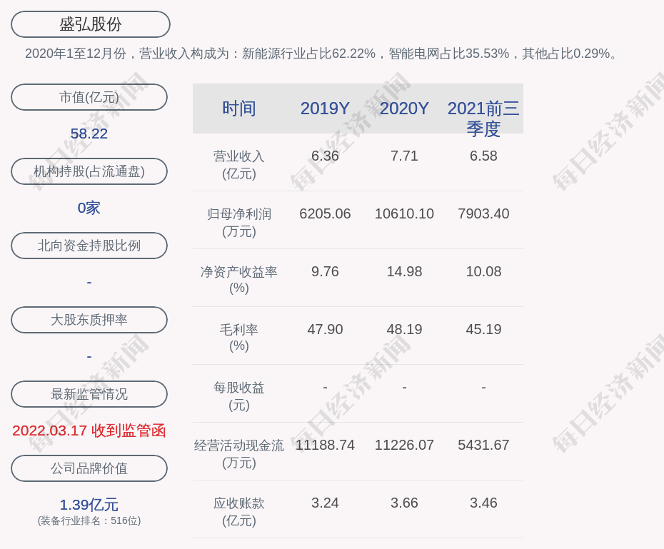 2020年1至12月份,盛弘股份的营业收入构成为:新能源行业占比62.22%,智能电网占比35.53%,其他占比0.29%。