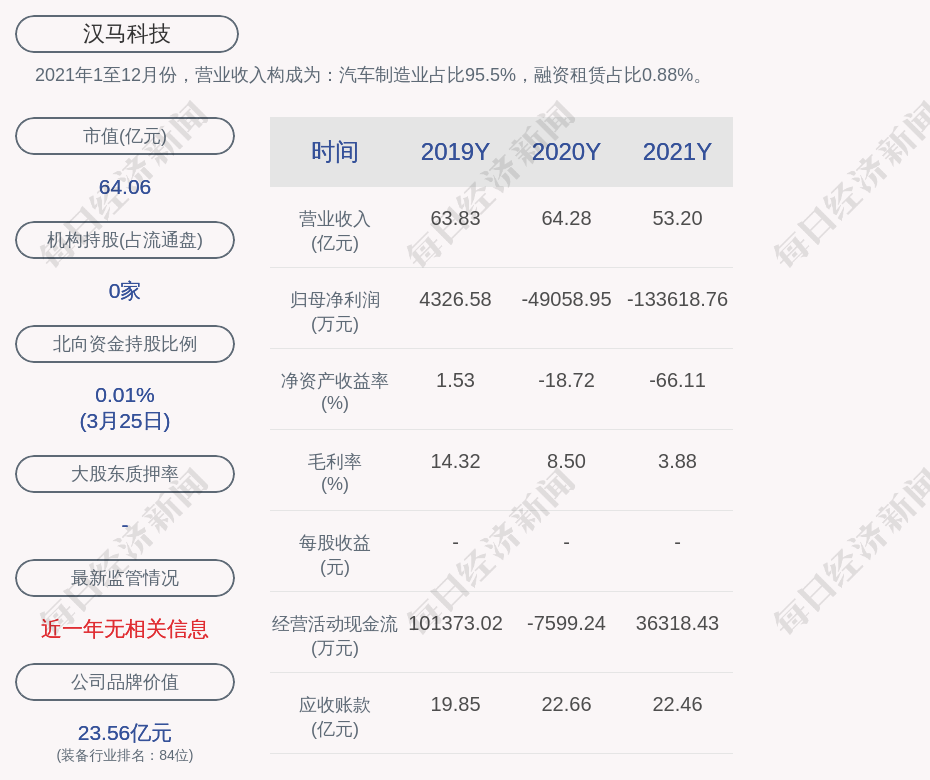 1. 汉马科技近30日内北向资金持股量未发生变化;
