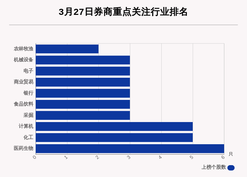从券商对行业的关注度来看,券商关注个股数居前的行业分别是医药生物、化工、计算机。