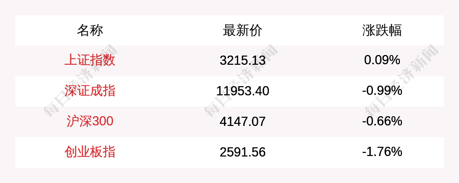 截至北京时间13:30,上证指数报3215.13点,涨0.09%,深证成指报11953.40点,跌0.99%,沪深300报4147.07点,跌0.66%,创业板指报2591.56点,跌1.76%