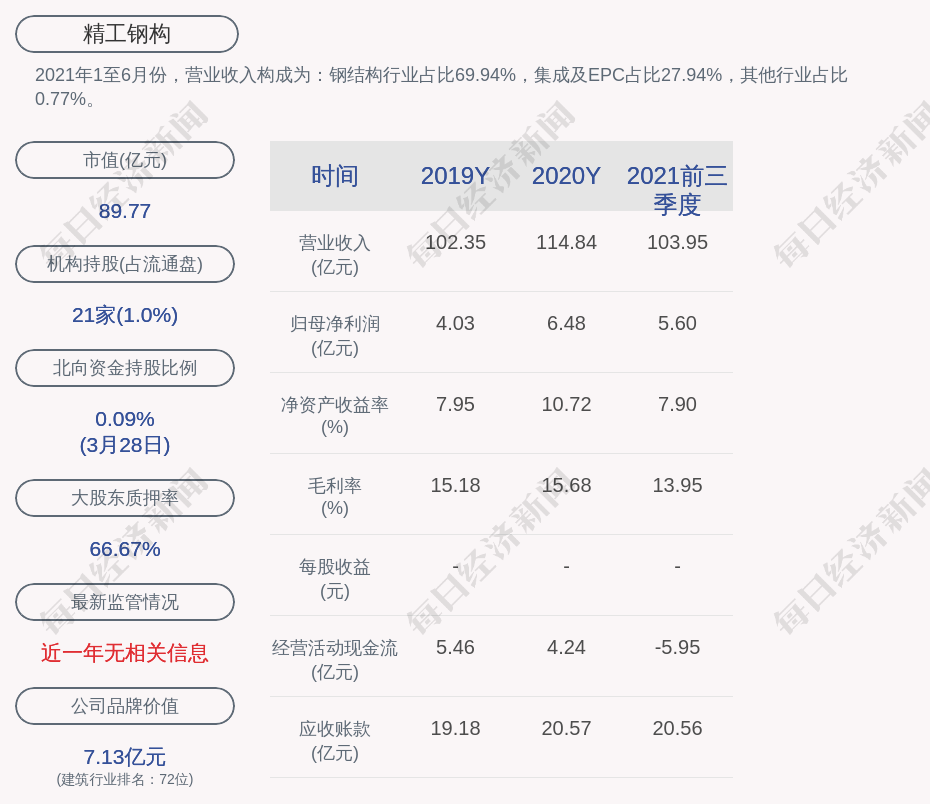 2. 近30日内共有5批机构对精工钢构调研,合计调研的机构家数为91家;