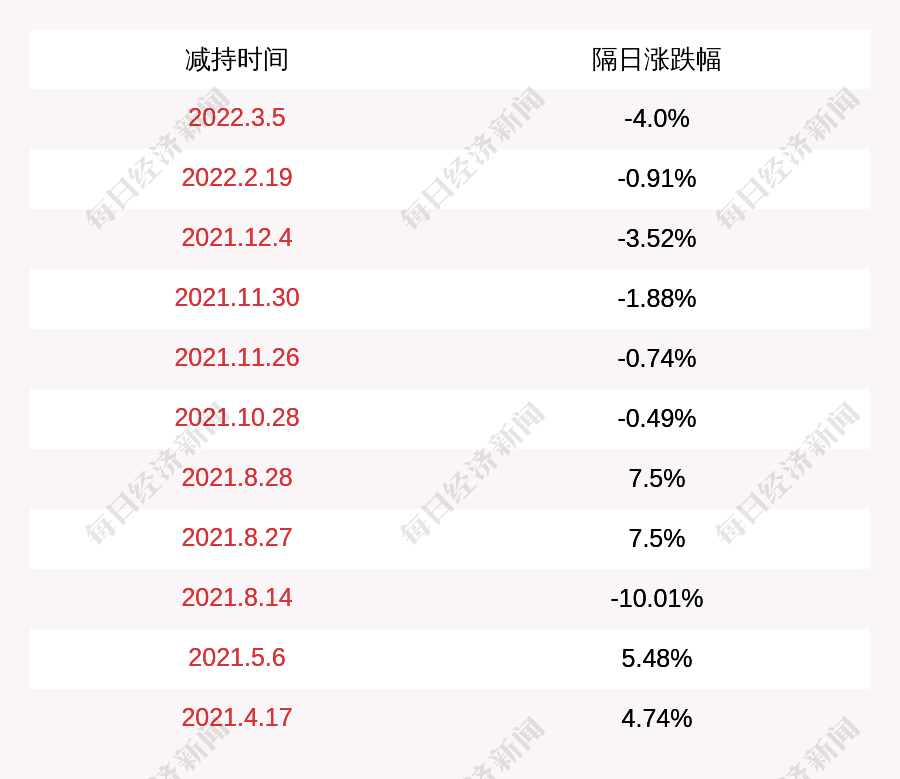 3. 北方稀土上次发布减持公告是2022年03月05日,第二个交易日下跌4.0%,北方稀土近一年共发布12次减持类公告。