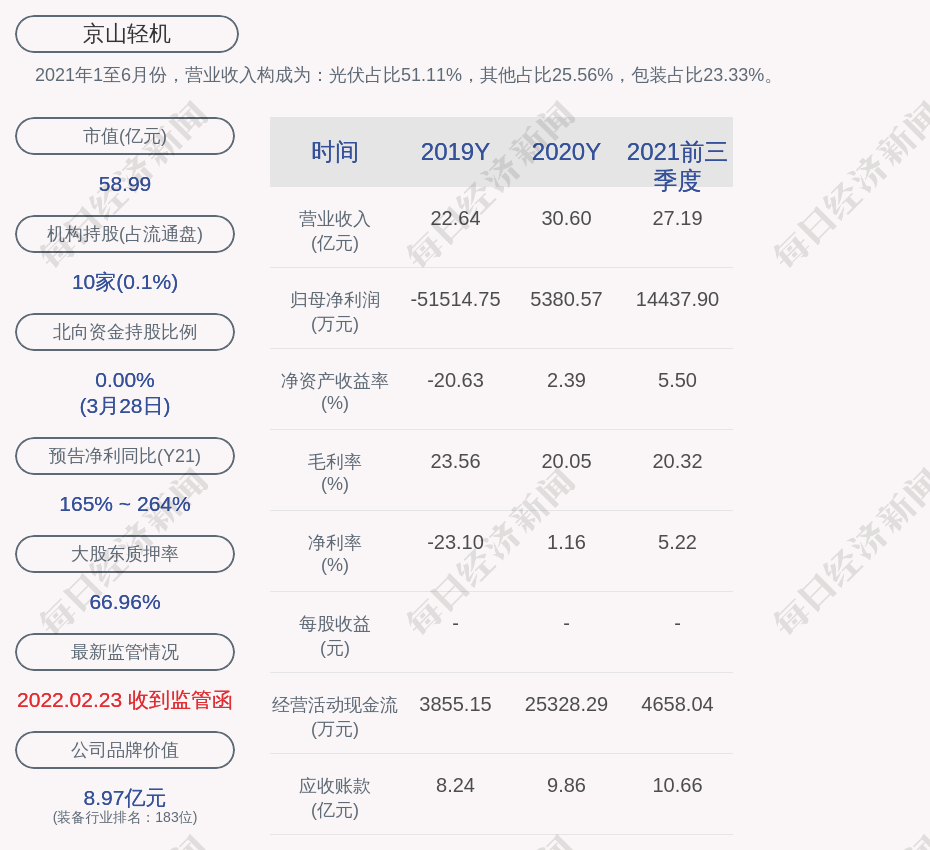2021年1至6月份,京山轻机的营业收入构成为:光伏占比51.11%,其他占比25.56%,包装占比23.33%。