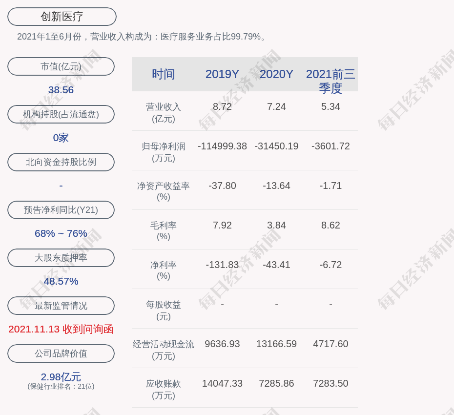 2021年1至6月份,创新医疗的营业收入构成为:医疗服务业务占比99.79%。