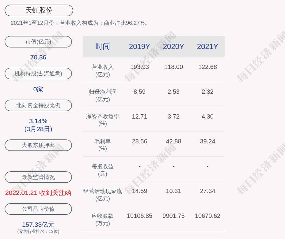 2021年1至12月份,天虹股份的营业收入构成为:商业占比96.27%。