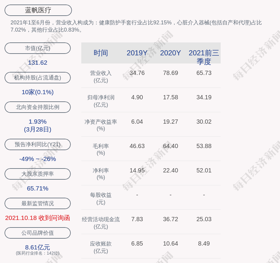 2. 近30日内无机构对蓝帆医疗进行调研;