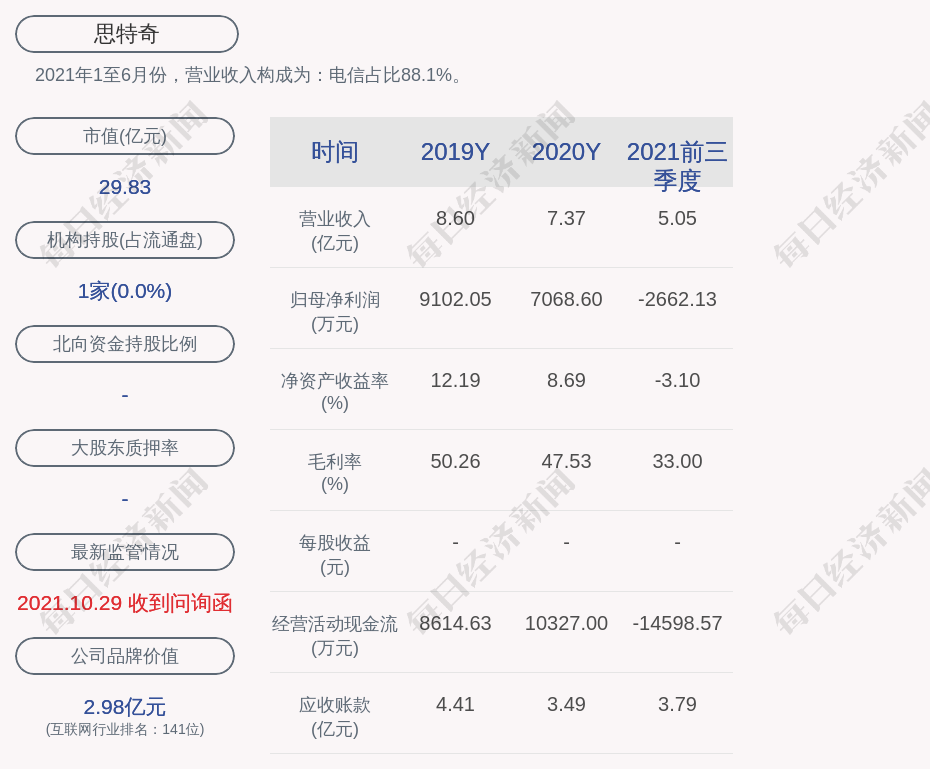 2021年1至6月份,思特奇的营业收入构成为:电信占比88.1%。