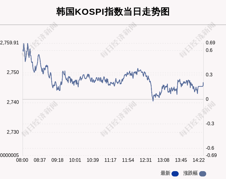 每经AI快讯:北京时间3月30日14:00,韩国KOSPI指数收盘上涨5.67点,涨幅为0.21%,报2746.74点。