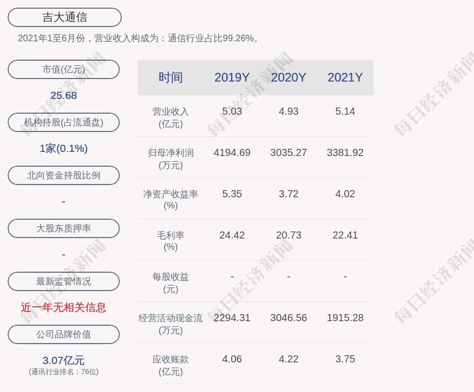 2021年1至6月份,吉大通信的营业收入构成为:通信行业占比99.26%。