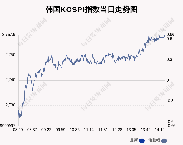 每经AI快讯:北京时间4月4日14:00,韩国KOSPI指数收盘上涨18.05点,涨幅为0.66%,报2757.9点。
