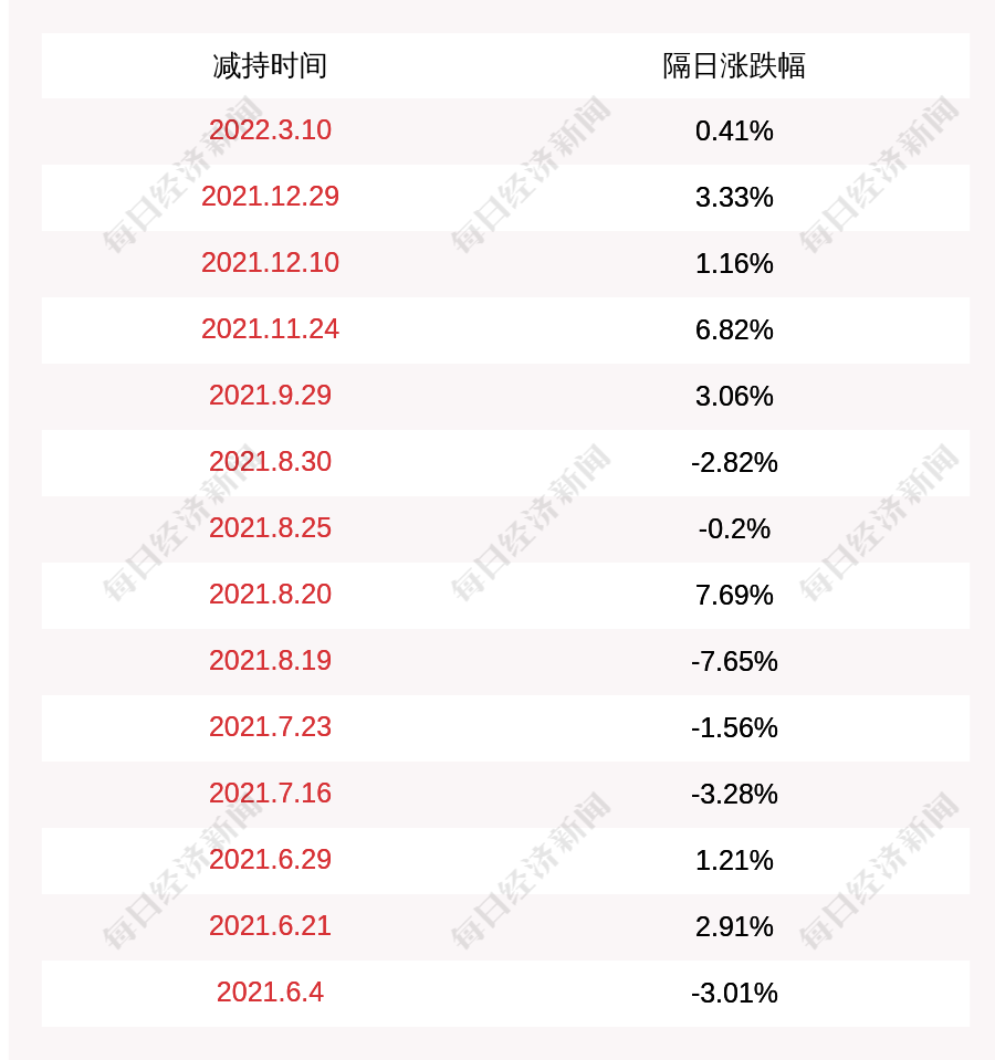 3. 正海磁材上次发布减持公告是2022年03月10日,第二个交易日上涨0.41%,正海磁材近一年共发布15次减持类公告。