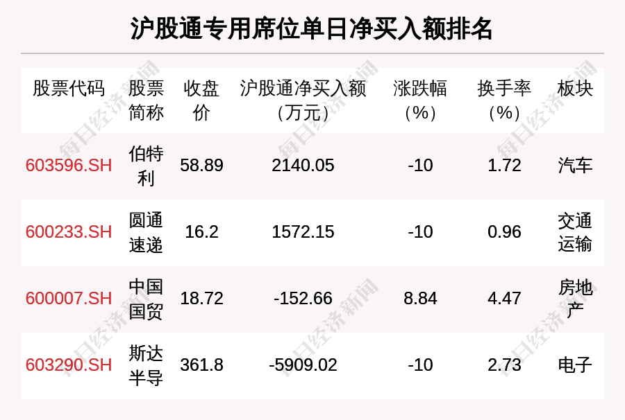 在龙虎榜中,涉及沪股通专用席位的个股有4只,伯特利的沪股通专用席位净买入额最大,净买入2140.05万元。