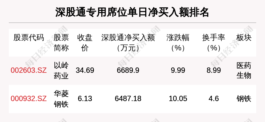 在龙虎榜中,涉及深股通专用席位的个股有2只,以岭药业的深股通专用席位净买入额最大,净买入6689.9万元。