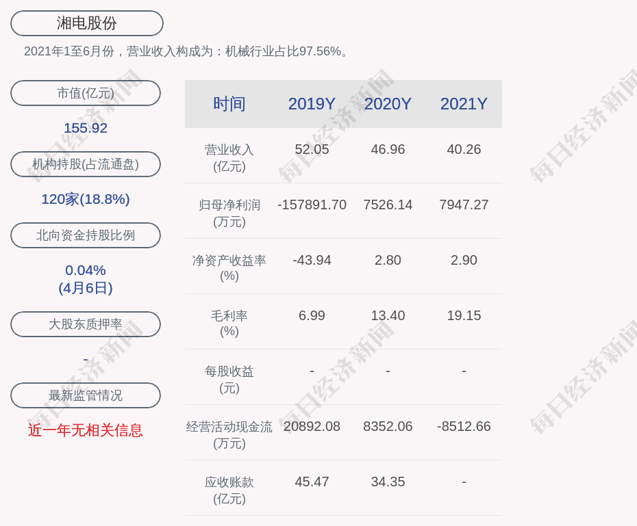 2021年1至6月份,湘电股份的营业收入构成为:机械行业占比97.56%。