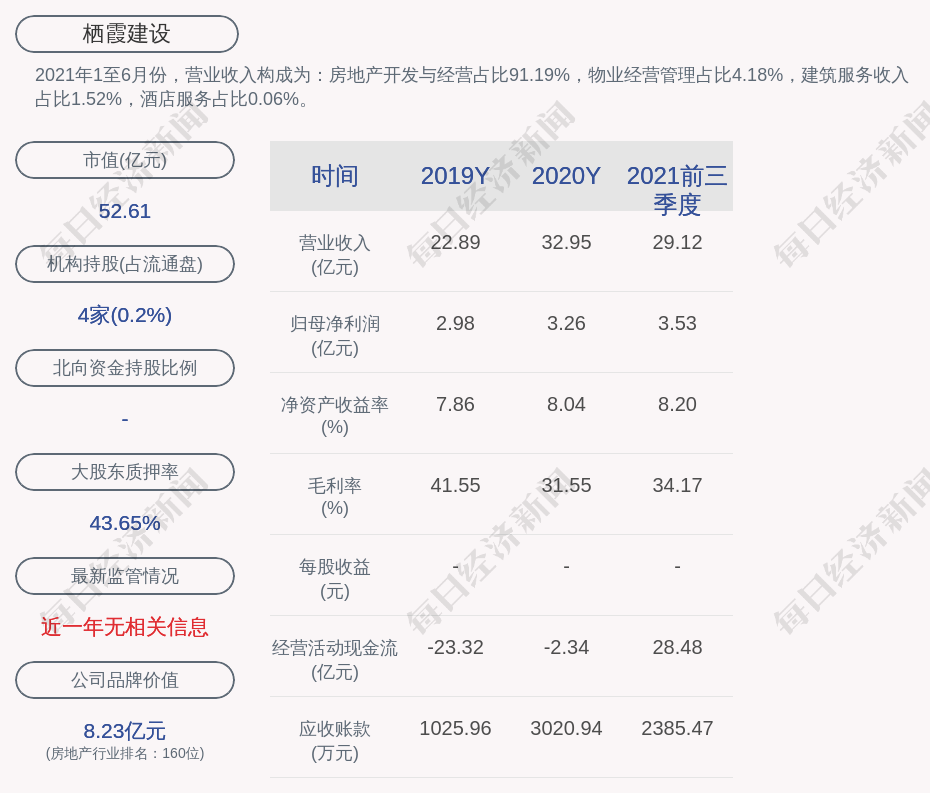 2. 栖霞建设在近3个交易日上涨23.7%,所属房地产板块同期上涨2.2%,上证指数同期下跌0.48%。
