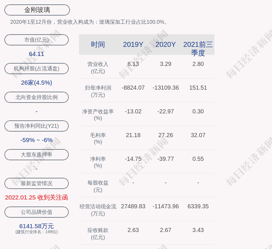 2020年1至12月份,金刚玻璃的营业收入构成为:玻璃深加工行业占比100.0%。