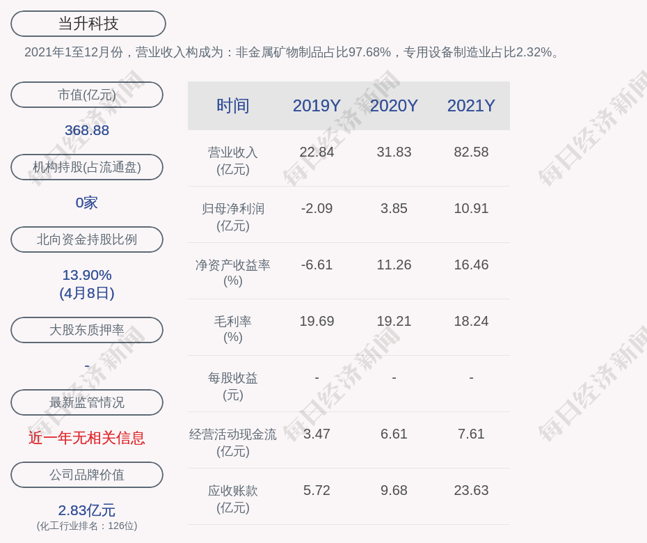 2021年1至12月份,当升科技的营业收入构成为:非金属矿物制品占比97.68%,专用设备制造业占比2.32%。