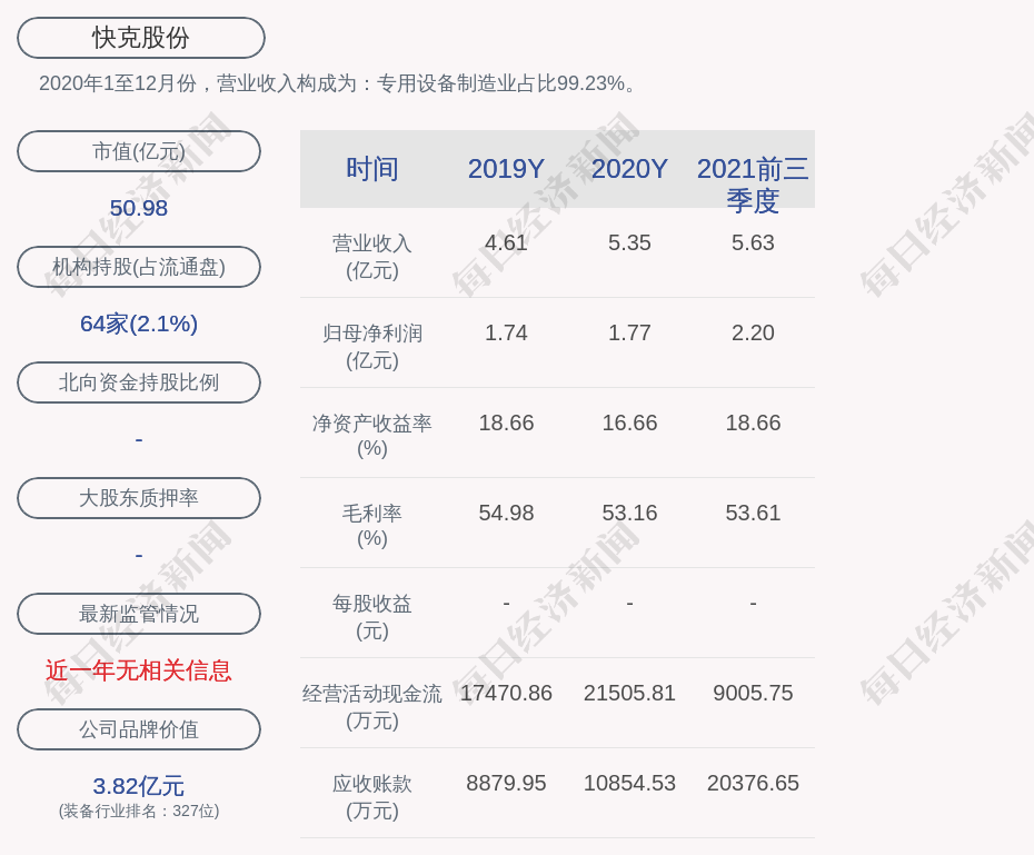 2020年1至12月份,快克股份的营业收入构成为:专用设备制造业占比99.23%。