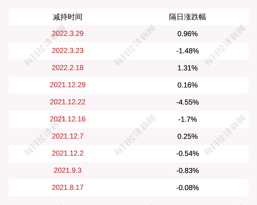 2. 锦盛新材上次发布减持公告是2022年03月29日,第二个交易日上涨0.96%,锦盛新材近一年共发布11次减持类公告。